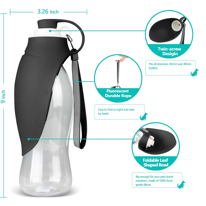 Featuring a built-in double-layer rubber seal, it effectively prevents leaks, so you don’t have to worry about the water bottle wetting your bag or car interior. Simply unfold the stylish drinking bowl and unscrew the cap for quick water dispensing. It allows for one-handed watering, making it convenient for long walks and outdoor activities.