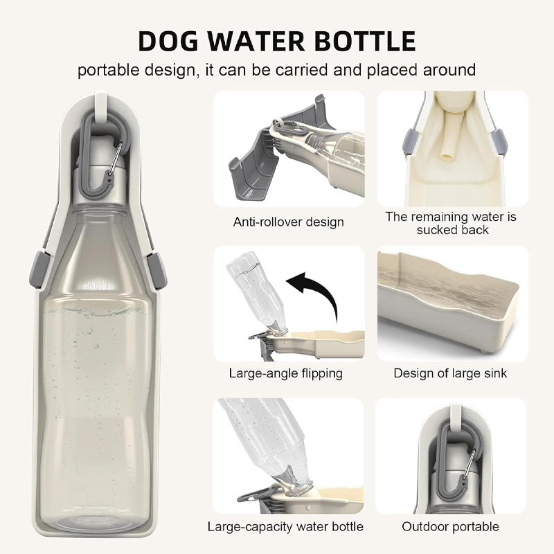 The water flow can be controlled with a single-hand press, and it stops when released. It features a return-flow design, allowing any remaining water to be recycled back into the bottle, reducing waste. The bottle’s structure can be unfolded to act as a stable base, preventing it from tipping over easily. It comes with a lanyard, allowing it to be attached to a backpack, making it suitable for outdoor activities such as walking, running, hiking, and traveling.