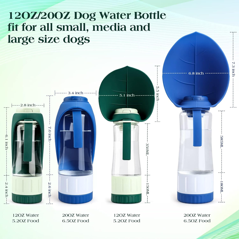 Upgraded Dog Water Bottle, Portable Dog Cat Puppy Pet Water Dispenser Feeder with Drinking Cup and Food Container Leak Proof for Outdoor Walking, Travel, Hiking 12OZ